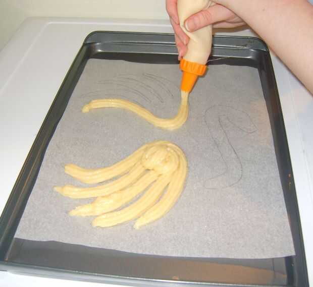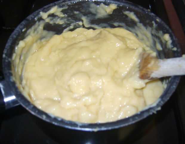 Vierte la leche, el agua en una cacerola y añada la mantequilla con sal y azúcar. Calentar la sartén a fuego lento hasta que la mantequilla se derrita. Suba el calor y hacerla hervir durante algunos segundos. Luego poner esta mezcla en el recipiente plástico agregar toda la harina poco a poco y empezar a mezclar con la batidora. Después de mezclar la harina pone la mezcla en la cacerola y agrega los huevos uno por uno mezclando bien después de añadir cada uno. Parece que nunca será capacitados pero si se mezcla mucho tiempo suficiente verás que integrará al final (generalmente lo mezclo con una cuchara de madera). Después de agregar los 5 huevos la masa saldrá brillante y suave (se puede ver en la imagen de abajo). p.s. puede utilizar 3 huevos en vez de 5 pero creo que vale 5. Luego poner la mezcla en una manga pastelera con una boquilla redonda y canalizarlo hacia fuera en la forma del cisne preparados en la hoja para hornear como se muestra en la fotografía. Hornear durante unos 18 minutos, gas marca 5. Cuando esté listo, sacarlo y enfriarlo. Después de que el cisne se haya enfriado, poner en el congelador para que sea fuerte. (Sólo se tarda 15 minutos para descongelarlo, así que sacarlo del congelador 10 minutos antes de servirlo).