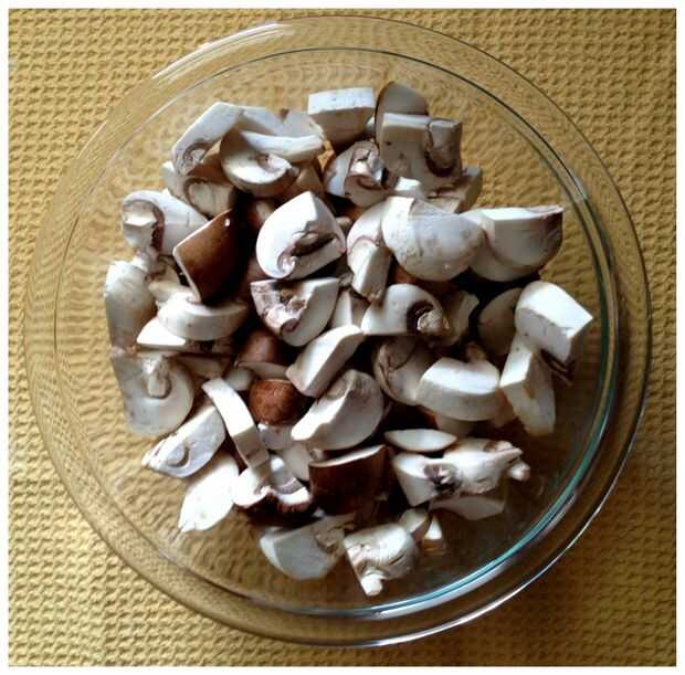 8 oz rebanadas setas de botón blancas (previamente lavadas), cortadas en trozos de tamaño aún