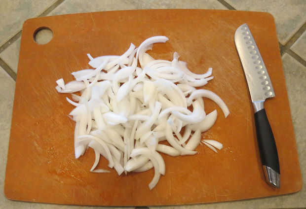 Empezar por cortar la cebolla (necesita aproximadamente dos tazas).
