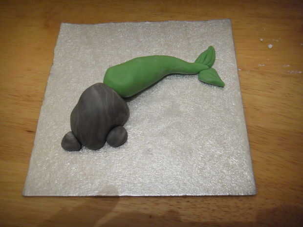 Coloque las 2 gotas de lágrima pequeña hasta el punto de la cola, inclinan la cola en la parte inferior de la roca.