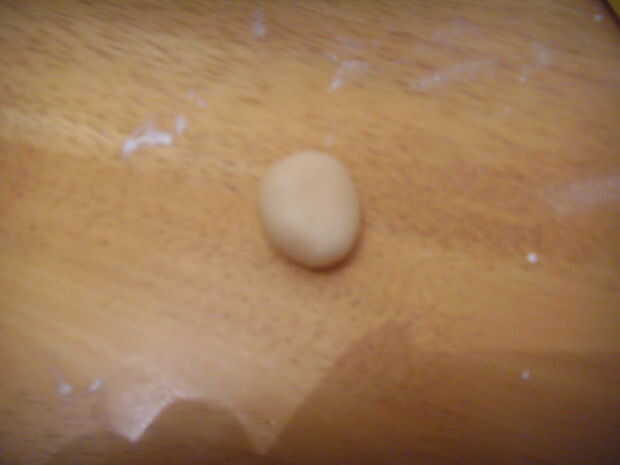 Rodar una esfera de mazapán para la cabeza. Aplanarlos un poco, de la forma cónica en la parte inferior a una barbilla.