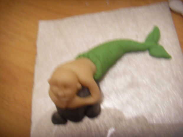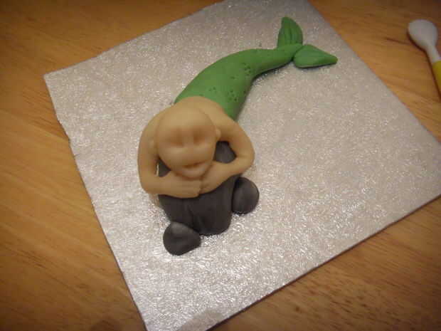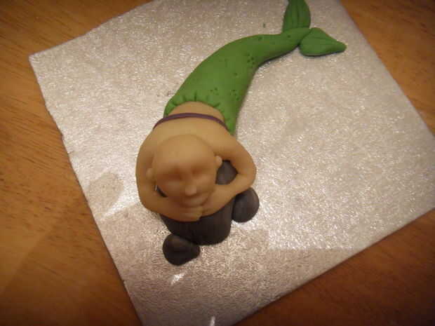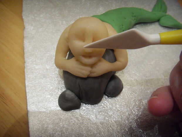 Pegar la cabeza sobre el cuerpo. Use una bolita de mazapán para el cuello si la cabeza no está sentado recto.