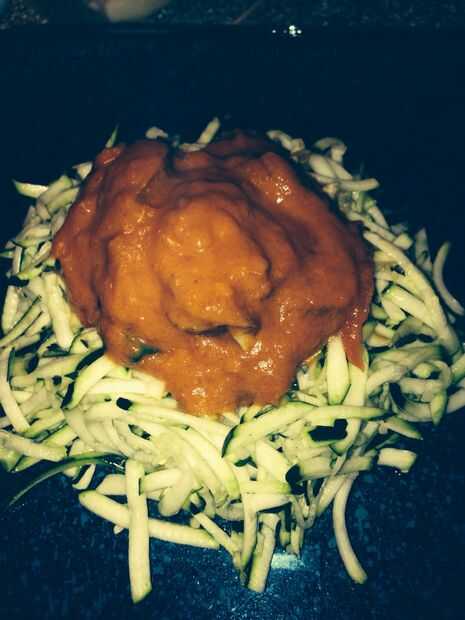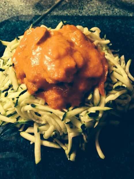 Secados al sol tomate anacardo Pesto de calabacín y salsa de pastas crudas (sin gluten, sin lácteos, libre de soja)