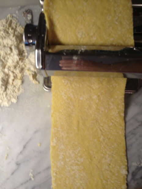 Rodillo la masa de la pasta con el rodillo de pasta en el mayor número.
