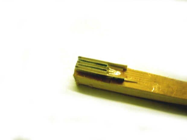 Con un poco de trasteo empujó la tira del metal en las ranuras y asegurado con resina epóxica parte 2