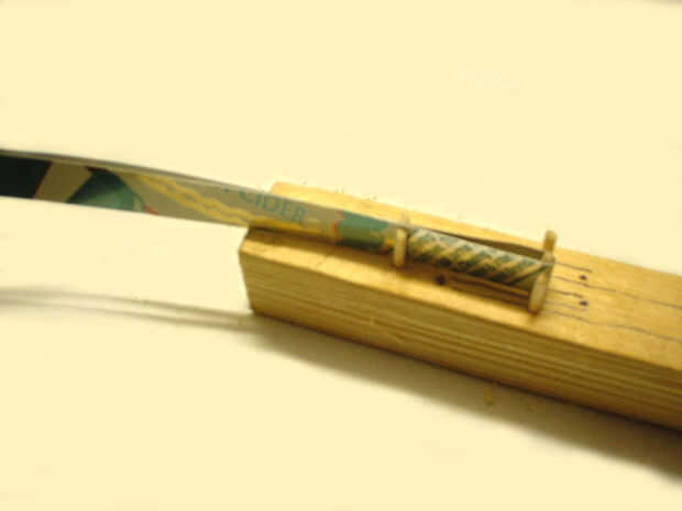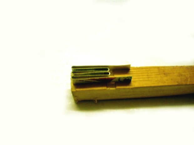 Donde la banda dio vuelta 180o cortar una hendidura en la madera.