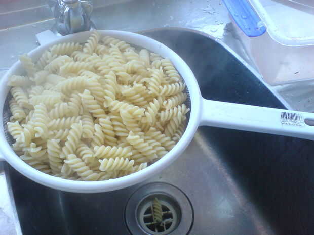 Drenar el fusilli secos con un colador. Usted querrá estar a través de en este paso, ya que tiene demasiada agua en la olla hará que el sabor resultante de plato húmedo y suave. A pesar de lo que algunas personas puedan decirle, no enjuague la pasta; en mi opinión, que va ser lavando lejos algunos de los mejores sabores lo fusilli tiene para ofrecer.