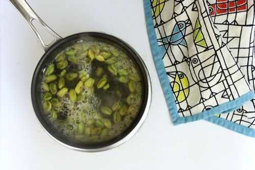 Poner agua a hervir y colocar en sus pistachos sin cáscara. Hervir durante dos o tres minutos y luego colóquelos en un colador. Deje correr agua fría sobre ellos.