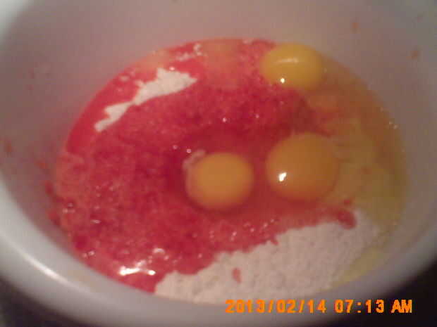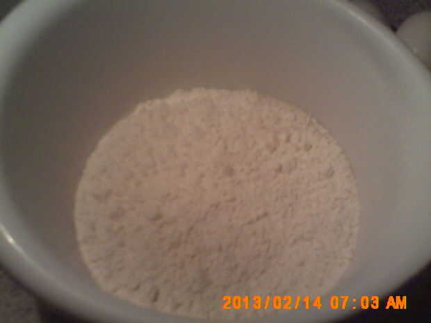 Romper un huevo (uno por cada taza de harina de pf) en la harina y revolver.