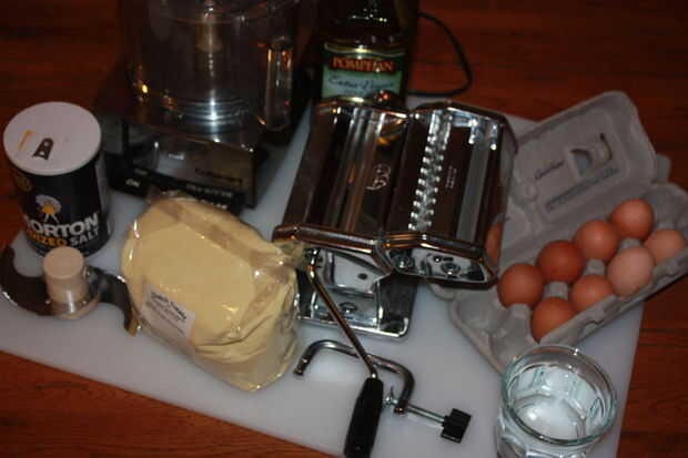 > una pasta maker - usted puede comprar estos de la ayuda de la cocina, que se anexan a un mezclador, william sonoma, que son similares a la mía, o en una tienda de internet. Tengo mi máquina de pastas en Amazon.com y es marca Marcato. Realmente se hace en Italia y será bastante mucho duraría para siempre, pero no se con agua limpia. Use una toalla de papel o un paño para limpiar después del uso. Asegúrese de obtener el accesorio cortador de pasta y la ponen si no están incluidas.