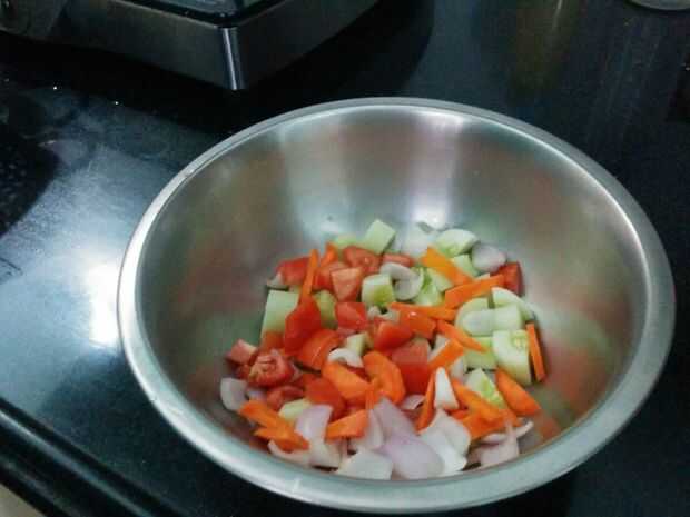 pimientos rellenos de quinua sirve cuatro o cinco.1 taza de quinua5-6 cucharadas de aceite de oliva3-4 dientes de ajo, picado1 chile jalapeño, semillas quitadas y picado (yo usé mitad el jalapeño puedes ver en la foto, ya que era tan grande)1/2 cebol