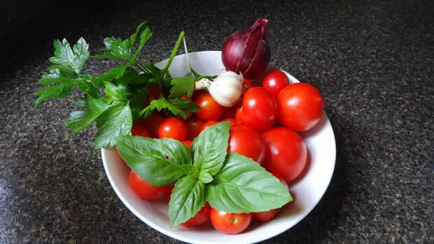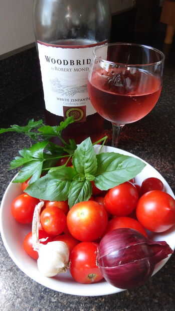 Yo quería sorprenderlo con la oferta real. Así que tomó el asunto en mis propias manos y me dirigí al jardín a recoger los ingredientes necesarios. Crecí todos los ingredientes. Bueno, no el aceite de oliva y el vino!