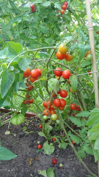 -Tomates, no mide, sólo utiliza lo que tenia maduros. Si tuviera que adivinar era alrededor de 1 libra de muchas variedades diferentes.