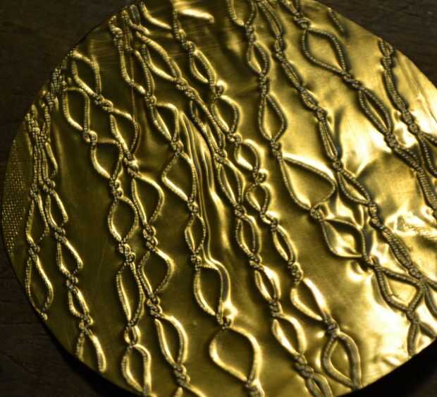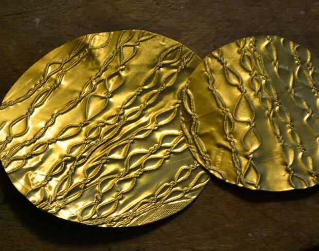 mi objetivo fue desarrollar un proceso para crear fácilmente relieve dorado letras para el uso en tarjetas de nombre de estilo. Estas tarjetas se componen de dos capas de papel laminado con una hoja de oro compuesta en el centro de corte láser.Hice e