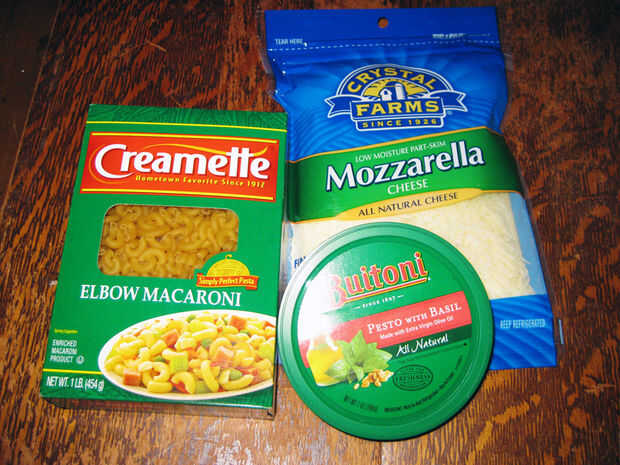 3.5 onzas Pesto 2 tazas codo Mac 1 bolsa de Mozzarella rallado queso