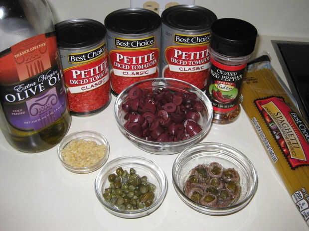 Pasta Puttanesca (de la puta Pasta) (1 / 8 paso)