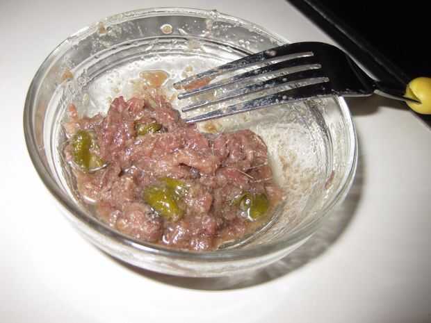 Triturar las anchoas con un tenedor. Esto ayuda a las anchoas a incorporar a la salsa. Estas anchoas vinieron envueltos alrededor de alcaparras pero normalmente ellos están dispuestos a lo largo de la lata. Simplemente transferir el aceite y los filetes a un plato pequeño y triturar con el dorso de un tenedor. La textura puede parecer extraña, si nunca ha cocinado con anchoas antes, pero no te preocupes. Melindrosos no cuenta en el plato hay anchoas y añaden un gran sabor salado.
