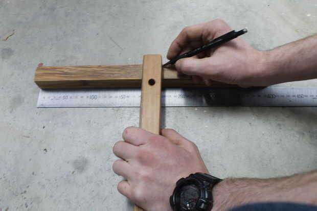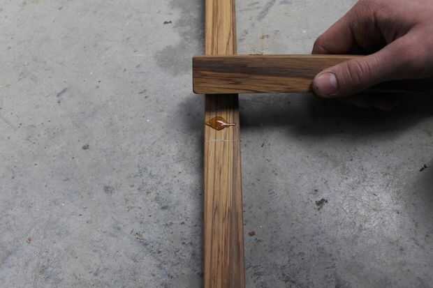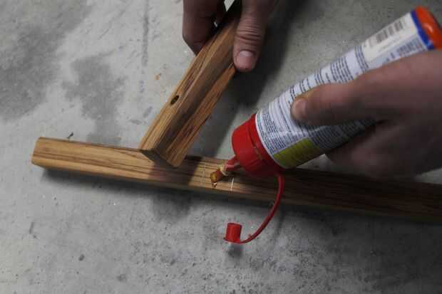 Siguiente centro y pegamento de los dos pies de apoyo a la barra transversal, necesita fijar estos unos.