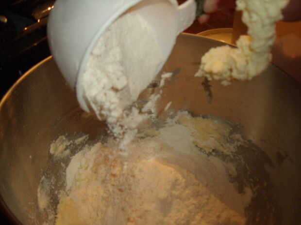 Agregar polvo de hornear, cremor tártaro y la harina. Mezclar juntos.
