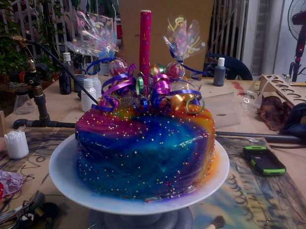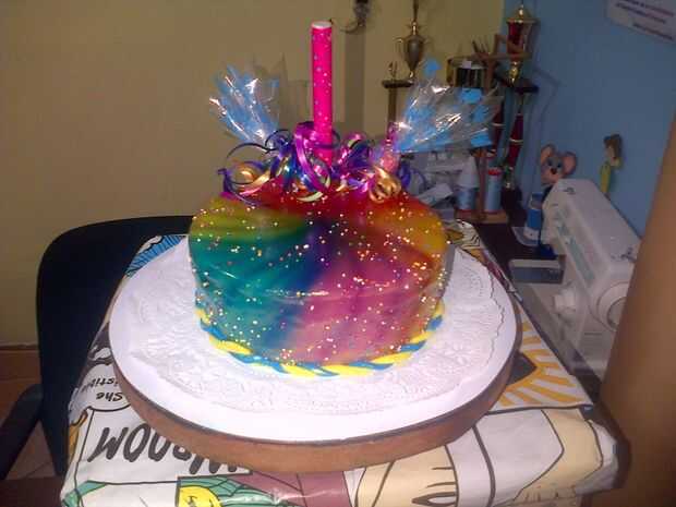Un método simplificado de hacer un pastel de arco iris con tan sólo dos latas para hornear.Fondo:Tontamente intenté hacer un pastel de capas de arco iris para la 7 º fiesta de cumpleaños de mi hija recientemente.Resultó OK (ver segunda imagen). Fue u
