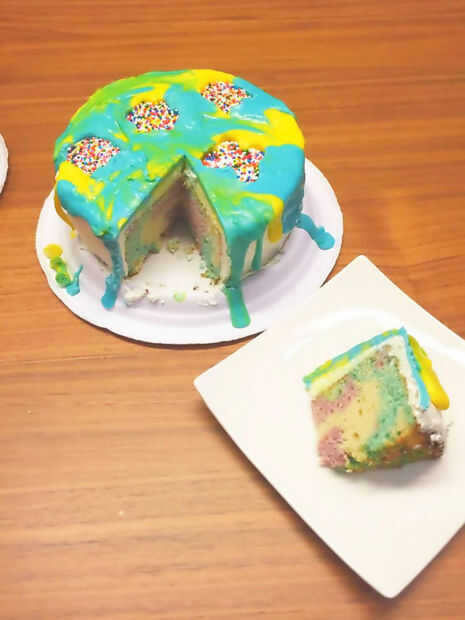 Aquí es un muy divertido colorido pastel que es hermosa pero también muy fácil de hacer. La habilidad de cambiar los colores de la torta hacen un postre perfecto para cualquier tipo de fiesta. Para la Navidad, se pueden utilizar el rojo y verde mientras que fácil podría cambiarla a color rosa y rojo para el día de San Valentín.