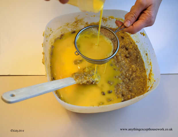 - Colar los huevos batidos a través de un colador de malla