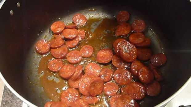 Espere a que el Chorizo empezar a cocinar y suelte sus aceites. Cuadro 3