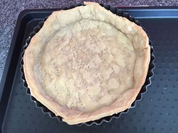 Estirar la masa quebrada y una lata de tarta con fondo de perder la línea. Hornear ciego durante 15 minutos a 180 grados / 160 ventilador deg / gas marca 4.