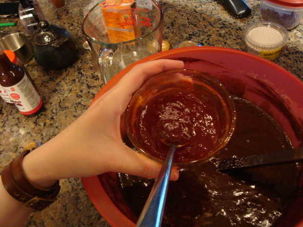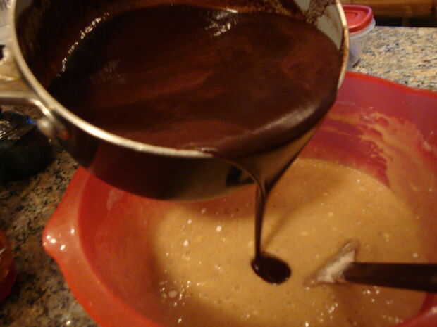 Añadir la harina, bicarbonato, Soda, sal, canela y polvo de Chipotle a la mezcla de azúcar. No hay necesidad de cernir los ingredientes secos.