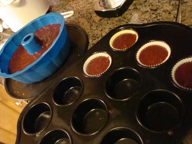 Para Cupcakes, cuchara la mezcla casi a la cima de sus láminas de la Magdalena. Hornear durante 20-30 minutos.