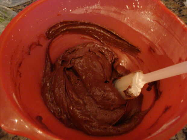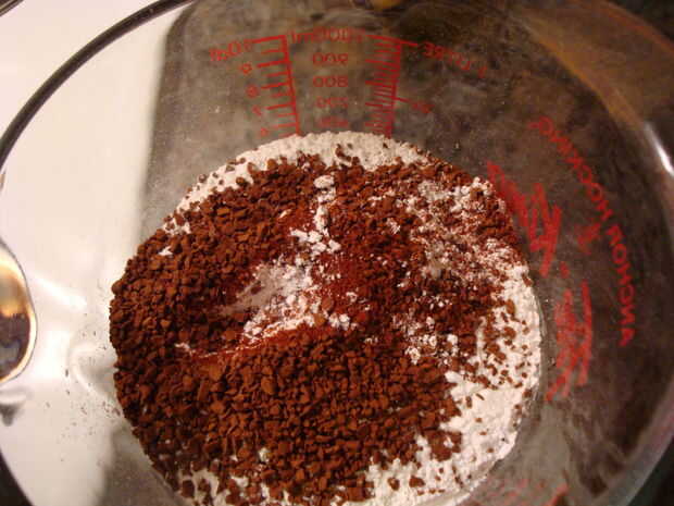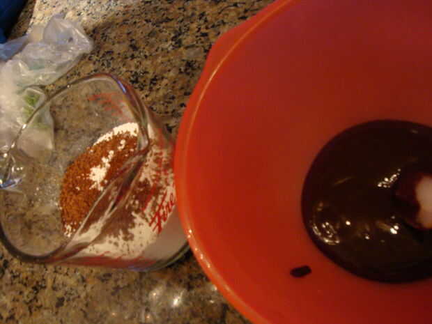 En un recipiente Mida su café instantáneo y el azúcar glas entonces vierte el Chocolate en la salsa y combinar. Te darás cuenta que se necesita más líquido. Esto es donde viene la leche. Agregar una cucharada a la vez de la leche. Siempre puede agregar más leche o más azúcar glas para conseguir la consistencia adecuada, que es de helar.