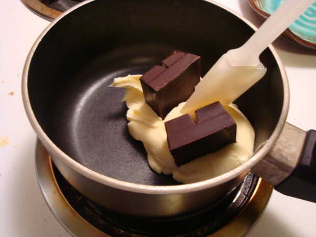 Una vez derretido y combinado retirar del fuego y deje enfriar durante unos 5 minutos.