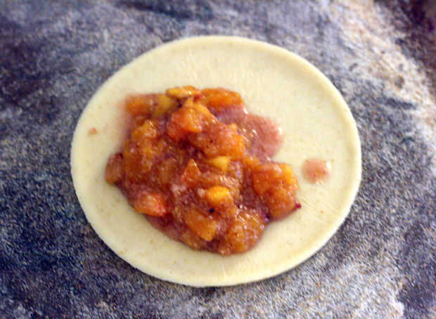 Doble la masa por la mitad, sellando los bordes y prensar con un tenedor.