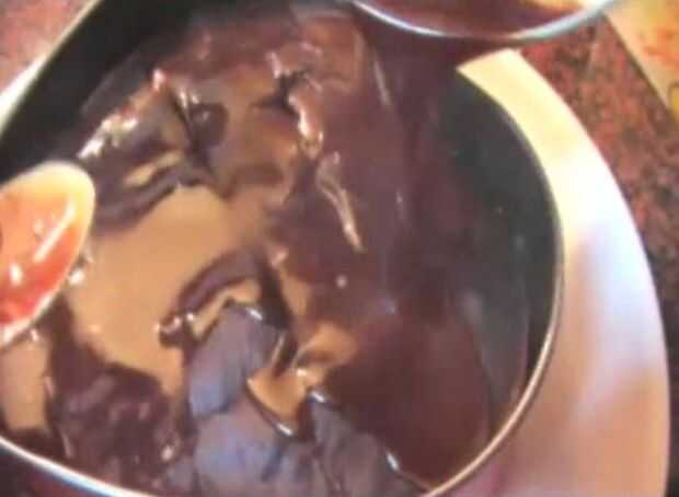 Casi listo! Saque el pastel el horno y pre rebanada en cuadrados. Vierta el glaseado caliente sobre el pastel. Ser seguro y la tapa!