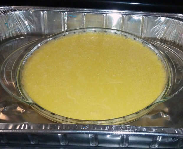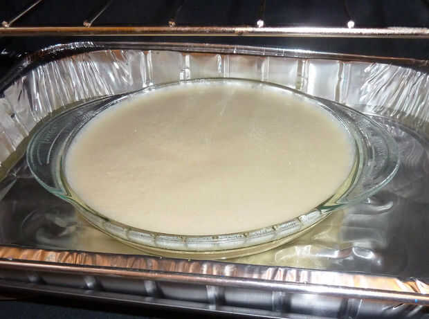 Coloque este recipiente en un recipiente más grande y poner dos bandejas en el horno.