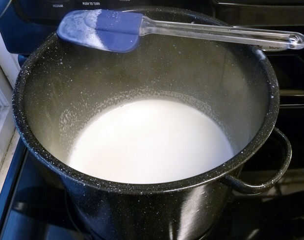Lentamente revuelva la leche escaldada la mezcla de huevo. Añadir 1 cucharadita de vainilla.