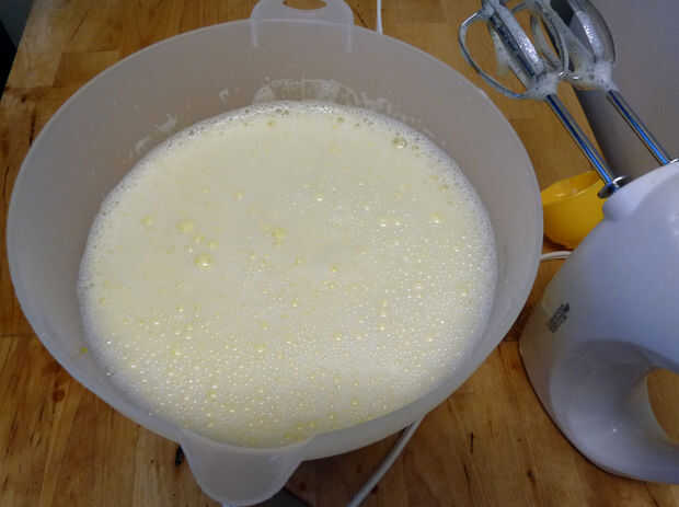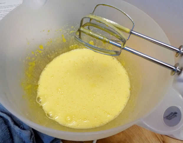 Batir las yemas con 3/4 taza de azúcar y 1/2 cucharadita de sal.
