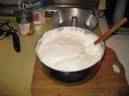 Piña en lugar de agua con caja de pastel de Ángel mezcla según instrucciones de la caja aplastada puede mezclar 1.