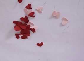 Tomar diferentes tonos de rojo y rosa papeles y cortar corazones mini tantas como quieras. Para hacer esto rápidamente, simplemente doble el papel del arte en la mitad y cortar la forma de la mitad de un corazón. Ábrala y tendrás un corazón que es simétrico en tamaño. (Si está seguro de no sacar la forma de un lado del corazón sobre el papel doblado y cortarlas en su lugar)