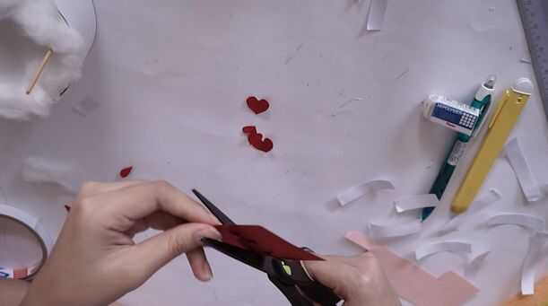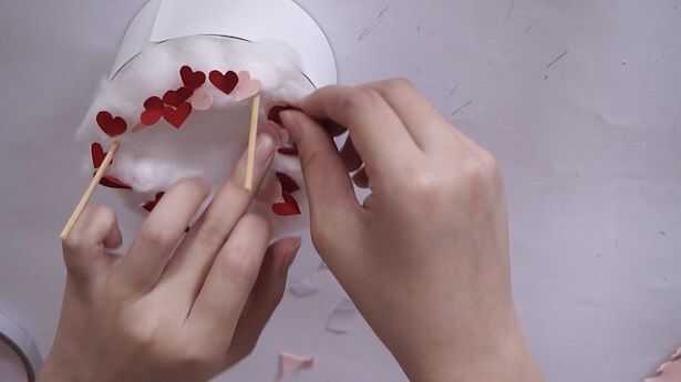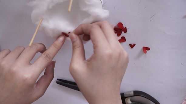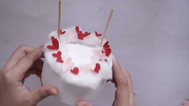 Luego, pega los corazones mini en el algodón a lo largo del borde utilizando el mismo método del paso anterior.