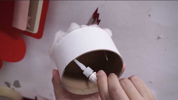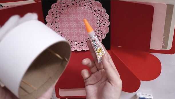 Para colocar la torta ficticia en su tarjeta de la caja, todo lo que tienes que hacer es aplicar pegamento por el borde inferior de la caja redonda. Entonces, rápidamente Coloque el pastel en tu tarjeta de la caja. Recuerde presionar duro y mantenerlo allí durante al menos 15 segundos o más. Asegúrese de verificar dos veces que cuidadosamente se une.