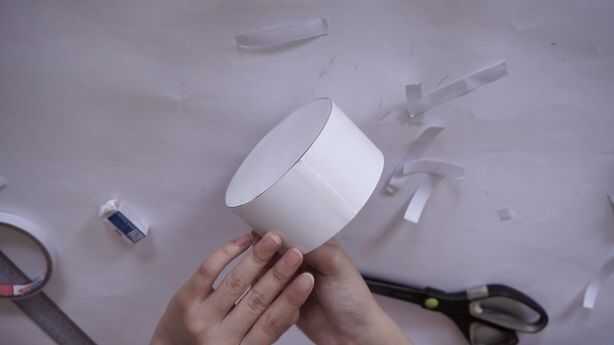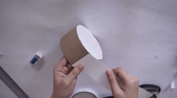 Del mismo modo, corte la tira del rectángulo para el cuerpo de la torta. Luego, enróllelo alrededor de la caja redonda que compruebe que se ajuste bien. Una vez que termines, anímate y tira alrededor de la caja redonda de la cinta ' cuerpo.
