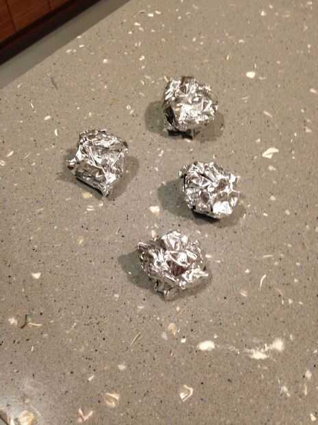 Hacer algunos pequeños fajos de papel de aluminio y colocar en frascos. Esto ayudará a evitar que la masa burbujeante para arriba.
