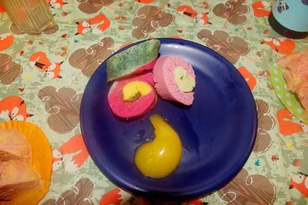 etapas para hacer un pastel de arco iris con diferentes colores louisePaso 1: hacer las tortas mezcla de pastel de 8 oz igualmente se dividen en 5 tazones de fuente y agregar todos los coloresPaso 2:Vierta en la bandeja y hornear durante 10 a 15 minu