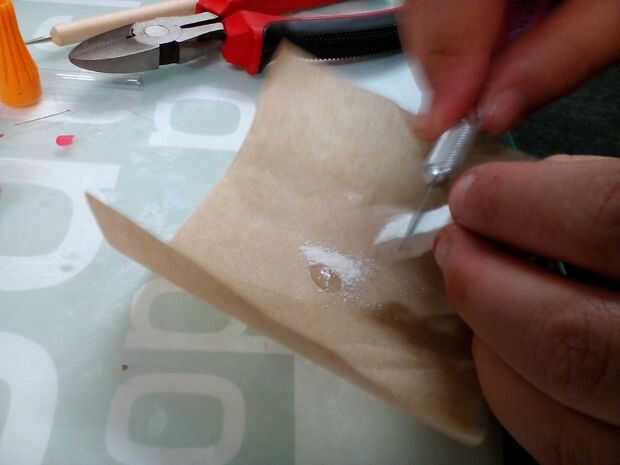 Alternativamente, añadir unas bolas de arcilla coloreada o granos pequeños en la parte superior de cada rebanada.