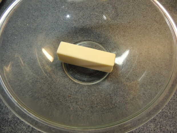 2. En un tazón grande, derretir una barra de mantequilla (1/2 taza) en el microondas durante 1 minuto. Se debe sobre todo derretir en este punto.