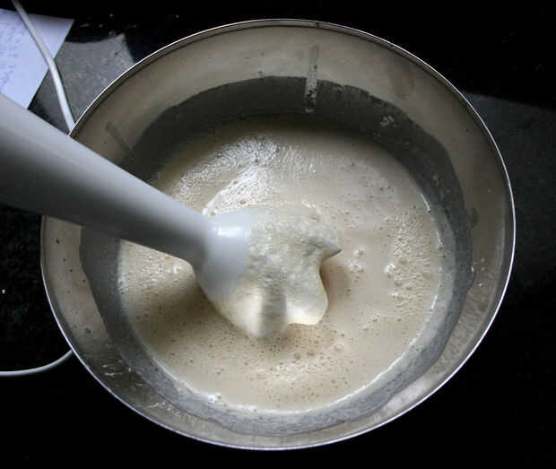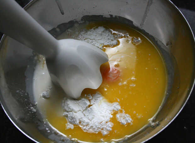 Primero derrita la mantequilla. Luego, volcar todos los ingredientes en un bol y mezclar con una batidora hasta que se vuelve homogénea.