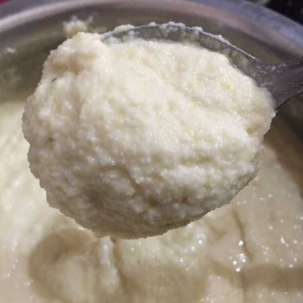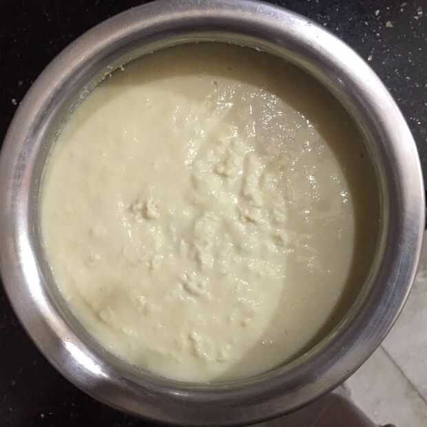 • Tomar la mezcla molida, añadir la cuajada y agua tibia y remoje durante 4 horas. Agregue agua si necesita para hacer la masa ligeramente más gruesa entonces masa de torta.