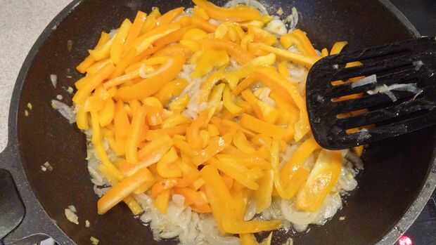 cocinar la cebolla hasta que están dorados y añadir pimiento.