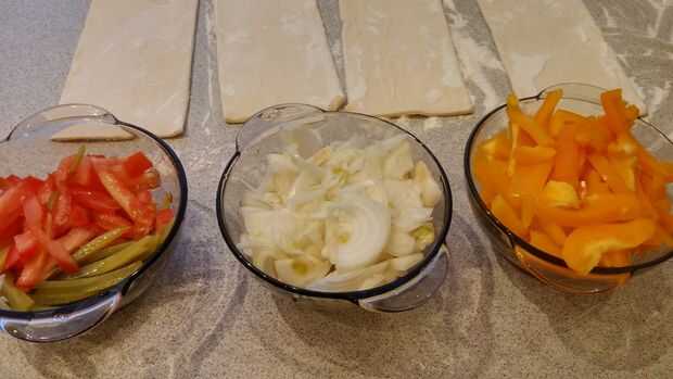 Cortar todas las cebollas, pimientos, tomates, encurtidos etc..